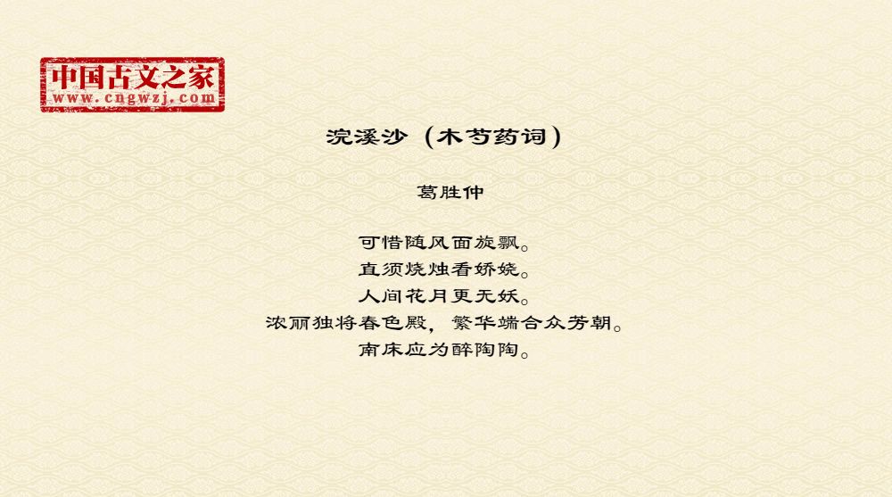 葛胜仲(1072~1144)宋代词人,字鲁卿,丹阳(今属江苏)人。绍圣四年(1097)进士。元符三年(1100),中宏词科。累迁国子司业,官至文华阁待
