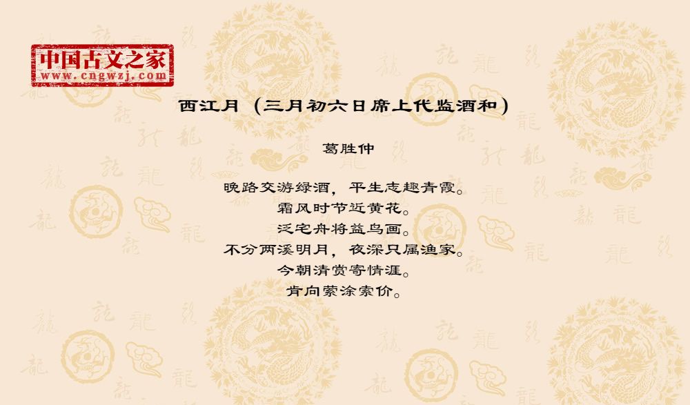 《西江月(三月初六日席上代监酒和)》的原文打印版(葛胜仲)