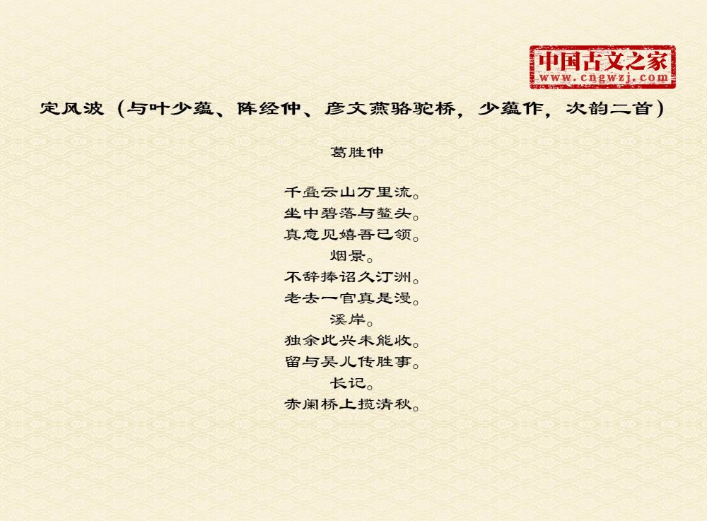 《定风波(与叶少蕴、阵经仲、彦文燕骆驼桥,少蕴作,次韵二首)》的原文打印版(葛胜仲)
