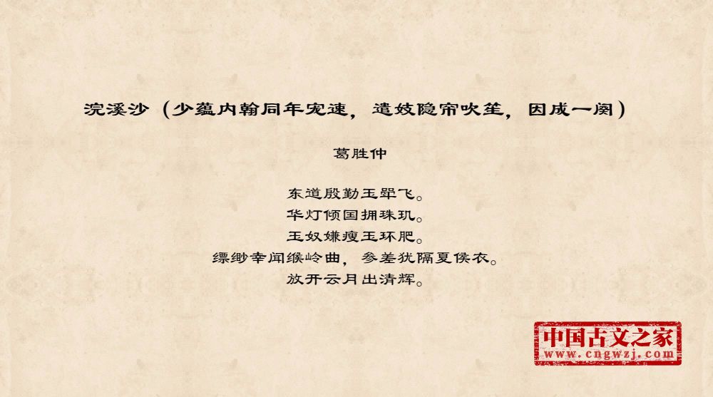 《浣溪沙(少蕴内翰同年宠速,遣妓隐帘吹笙,因成一阕)》的原文打印版(葛胜仲)