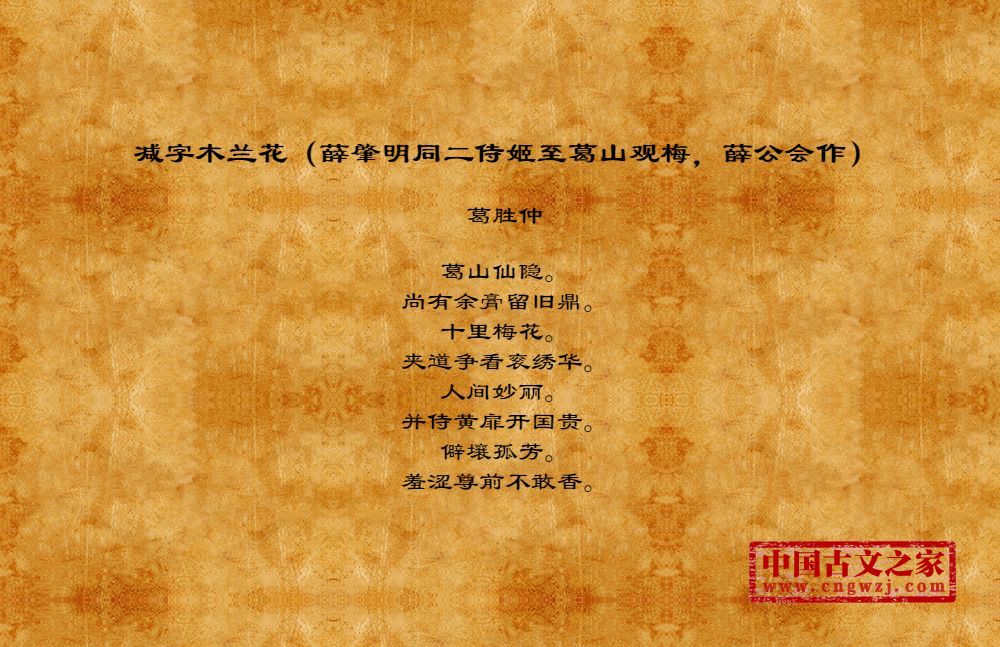 《减字木兰花(薛肇明同二侍姬至葛山观梅,薛公会作)》的原文打印版(葛胜仲)