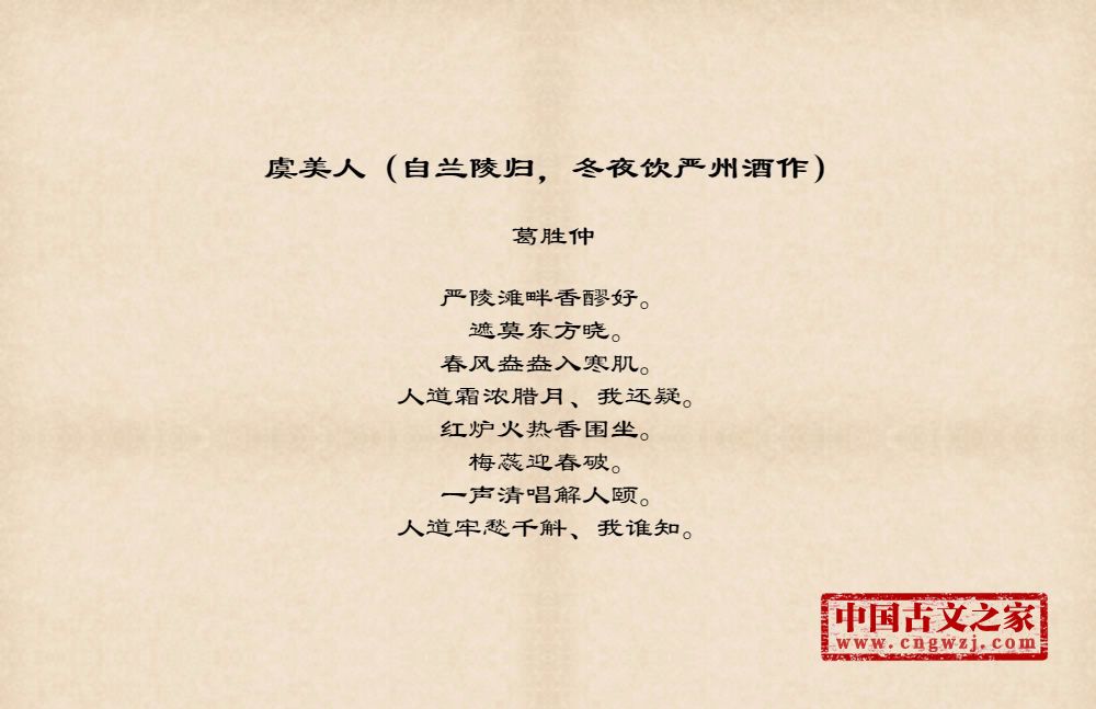 《虞美人(自兰陵归,冬夜饮严州酒作)》的原文打印版(葛胜仲)