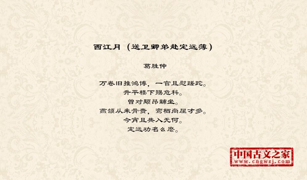 《西江月(送卫卿弟赴定远簿)》的原文打印版(葛胜仲)