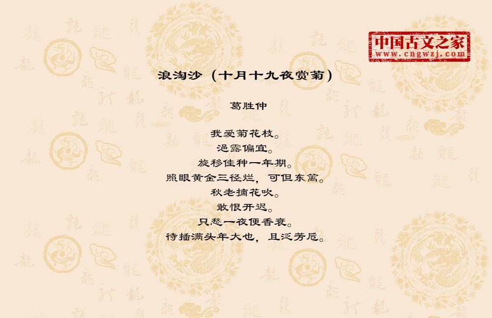 《浪淘沙(十月十九夜赏菊)》的原文打印版(葛胜仲)