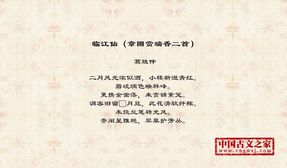 《临江仙(章圃赏瑞香二首)》的原文打印版(葛胜仲)