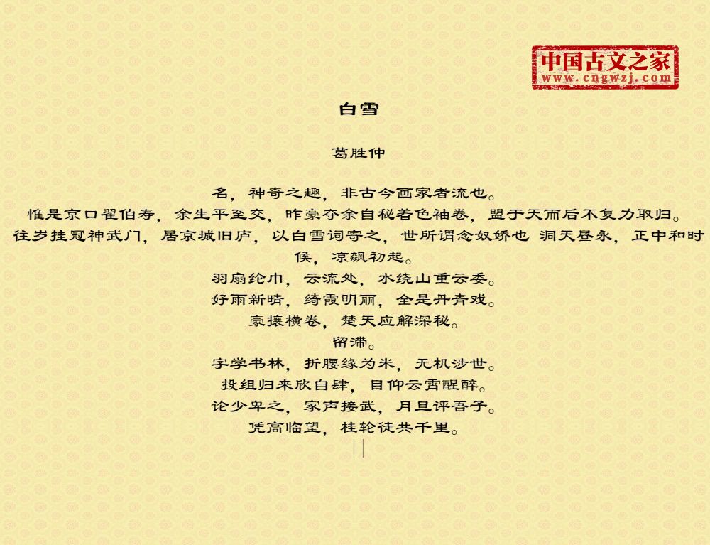 葛胜仲(1072~1144)宋代词人,字鲁卿,丹阳(今属江苏)人。绍圣四年(1097)进士。元符三年(1100),中宏词科。累迁国子司业,官至文华阁待