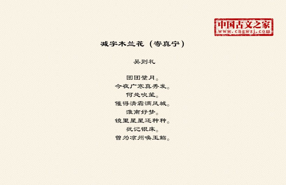 《减字木兰花(寄真宁)》的原文打印版(吴则礼)