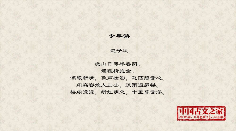 《少年游》的原文打印版(赵子发)