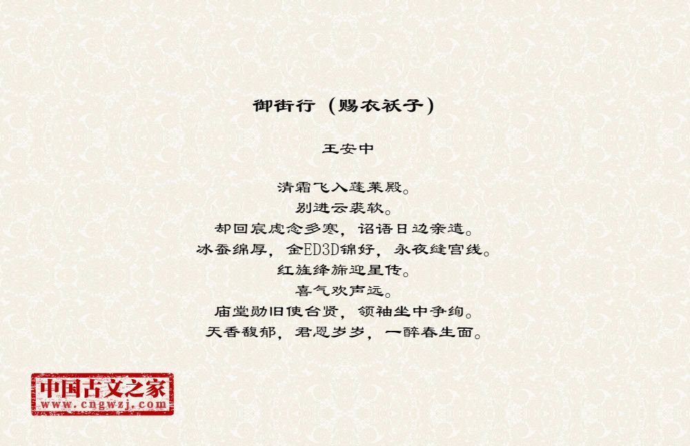清霜飞入蓬莱殿。别进云裘软。却回宸虑念多寒,诏语日边亲遣。冰蚕绵厚,金ED3D锦好,永夜缝宫线。红旌绛旆迎星传。喜气欢声远。庙堂勋旧使台贤,领袖坐中争绚。天香馥郁,君恩岁岁,一醉春生面。