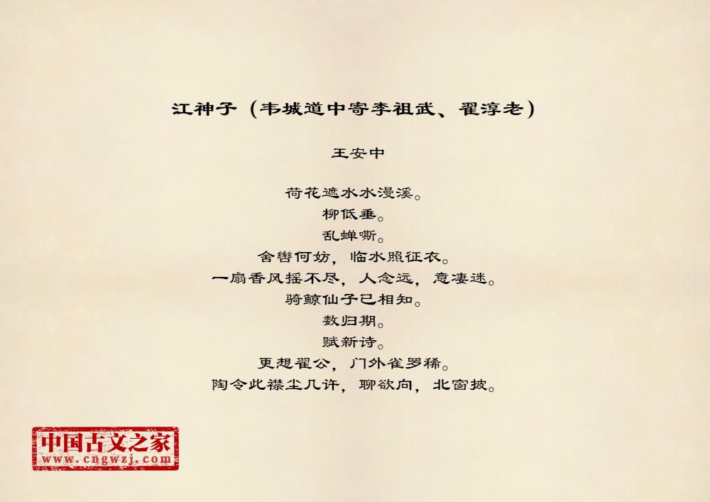 《江神子(韦城道中寄李祖武、翟淳老)》的原文打印版(王安中)