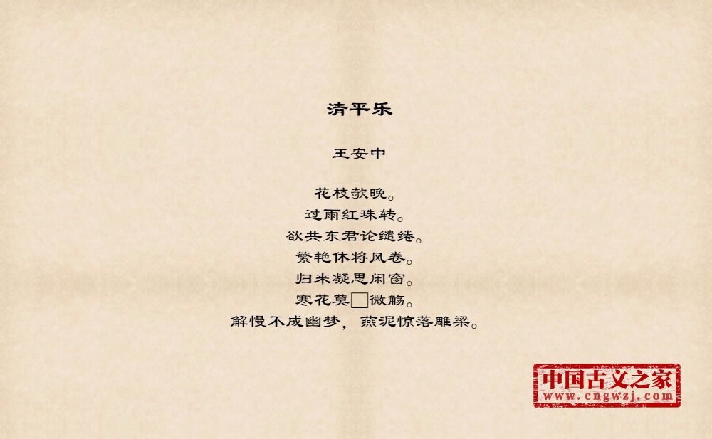 王安中(1075~1134)北宋末、南宋初词人。字履道,号初寮。中山阳曲(今山西太原)人。年青时曾从师苏轼、晁说之。晁教以为学当谨初,故牓其室为初寮。