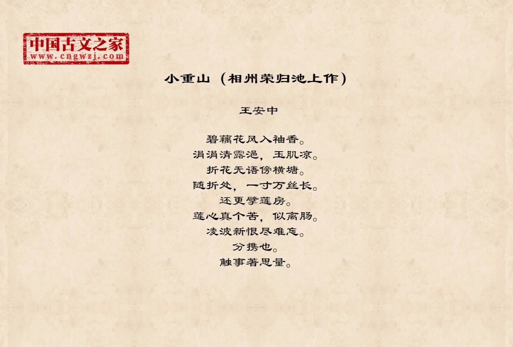 《小重山(相州荣归池上作)》由王安中创作