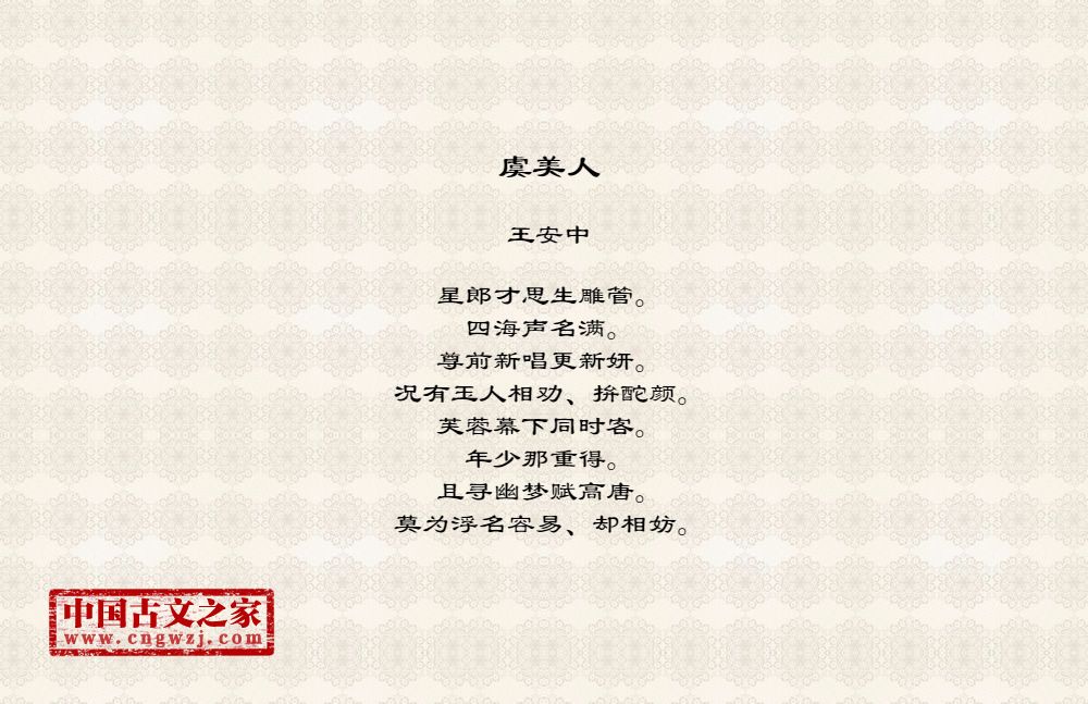 王安中(1075~1134)北宋末、南宋初词人。字履道,号初寮。中山阳曲(今山西太原)人。年青时曾从师苏轼、晁说之。晁教以为学当谨初,故牓其室为初寮。