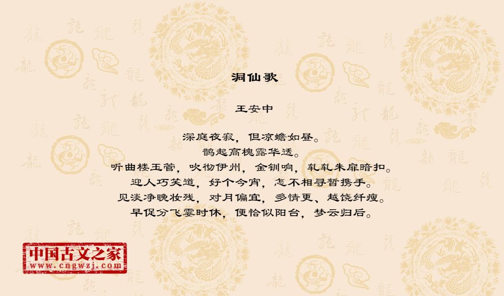 深庭夜寂,但凉蟾如昼。鹊起高槐露华透。听曲楼玉管,吹彻伊州,金钏响,轧轧朱扉暗扣。迎人巧笑道,好个今宵,怎不相寻暂携手。见淡净晚妆残,对月偏宜,多情更、越饶纤瘦。早促分飞霎时休,便恰似阳台,梦云归后。