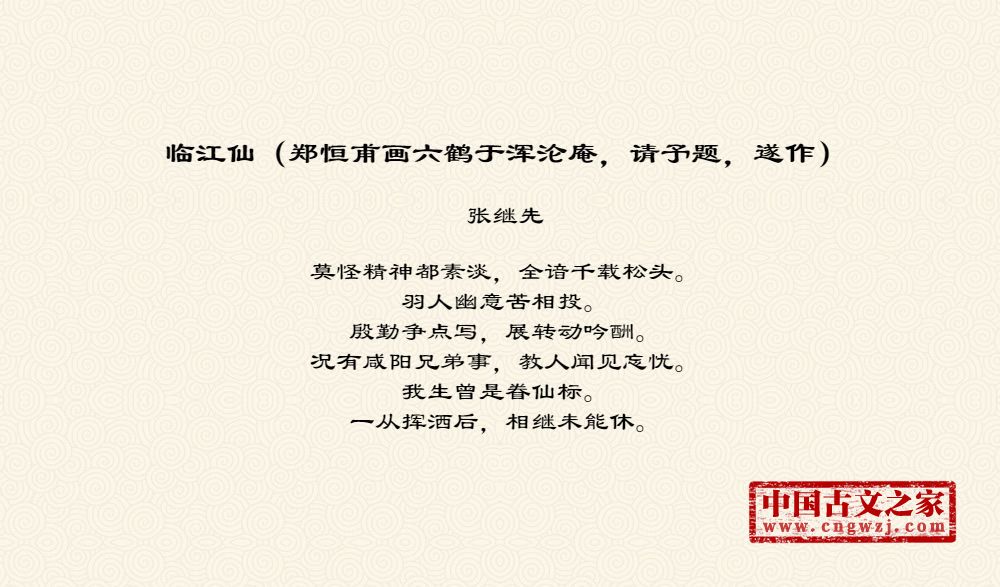 《临江仙(郑恒甫画六鹤于浑沦庵,请予题,遂作)》的原文打印版(张继先)