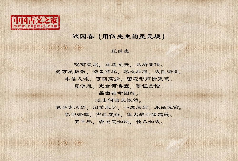 《沁园春(用伍先生韵呈元规)》由张继先创作