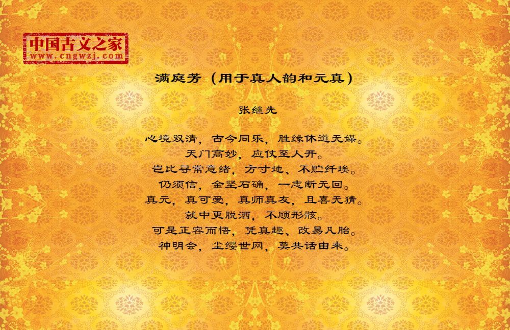 《满庭芳(用于真人韵和元真)》的原文打印版(张继先)