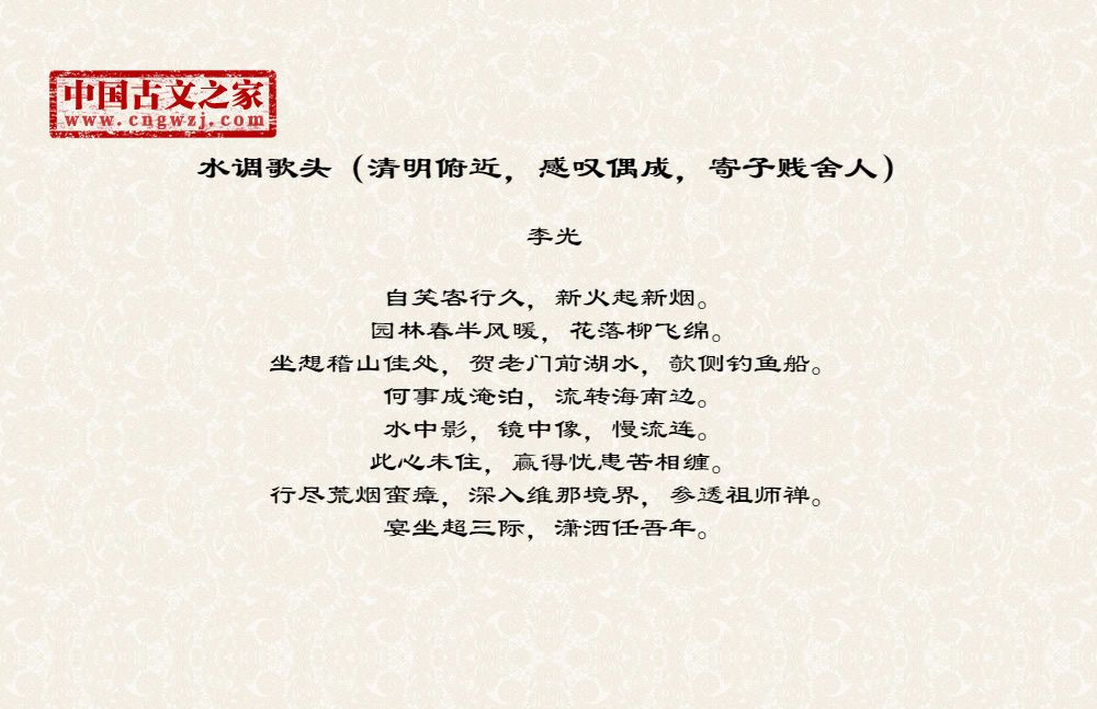 《水调歌头(清明俯近,感叹偶成,寄子贱舍人)》由李光创作