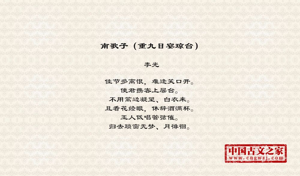 《南歌子(重九日宴琼台)》的原文打印版(李光)
