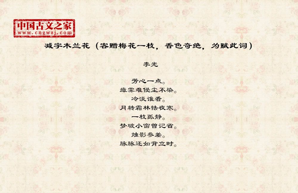 《减字木兰花(客赠梅花一枝,香色奇绝,为赋此词)》的原文打印版(李光)
