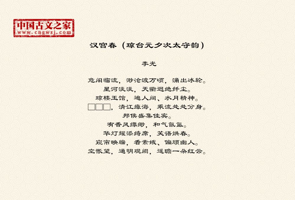 《汉宫春(琼台元夕次太守韵)》的原文打印版(李光)