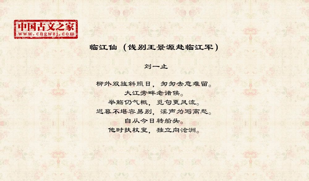 《临江仙(饯别王景源赴临江军)》由刘一止创作