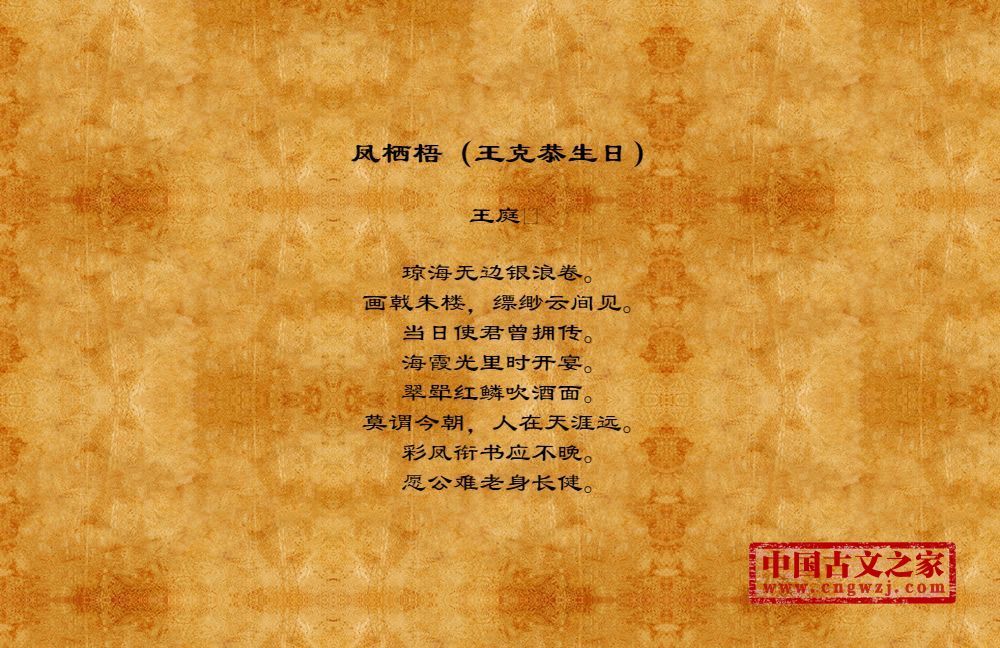 《凤栖梧(王克恭生日)》的原文打印版(王庭)