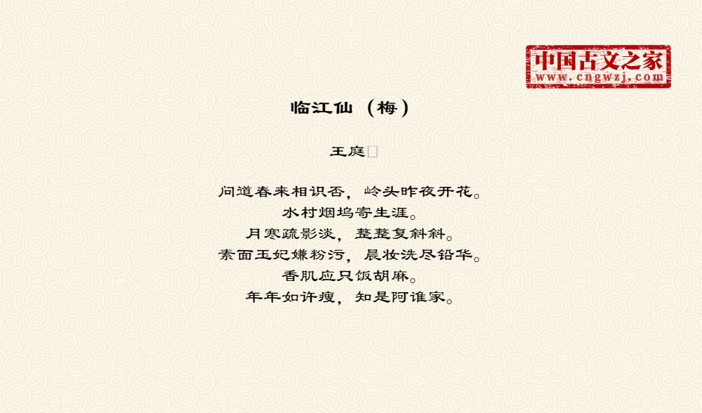 《临江仙(梅)》的原文打印版(王庭)