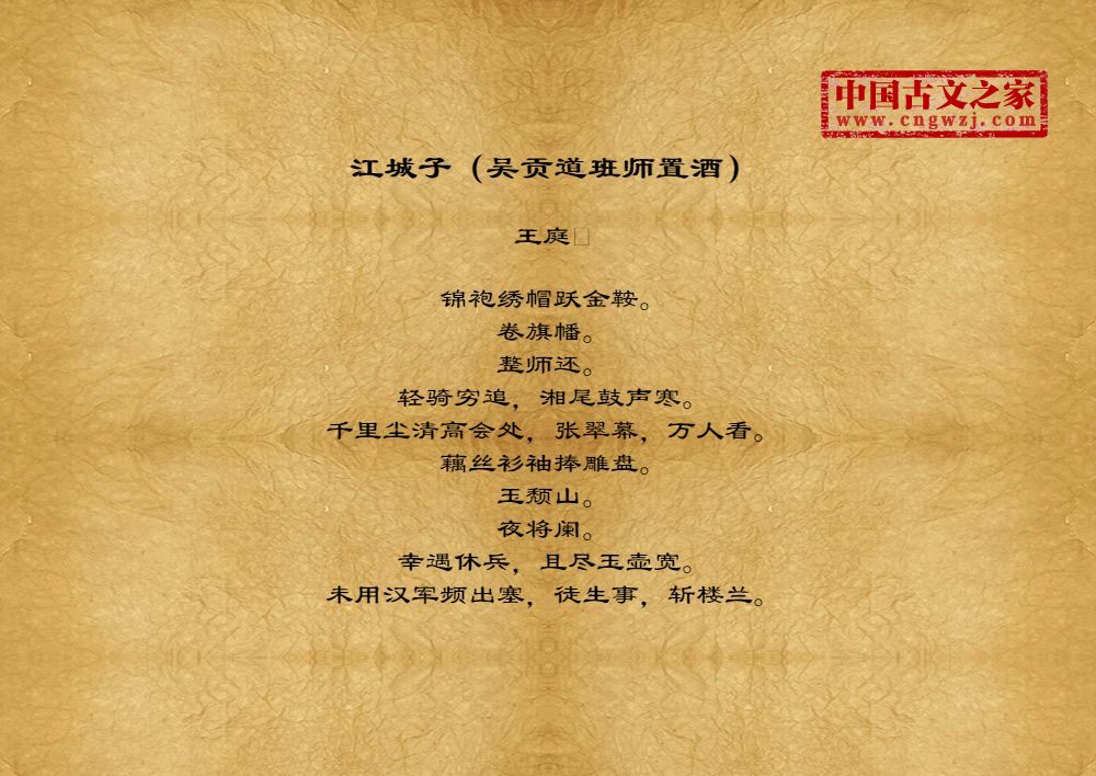 《江城子(吴贡道班师置酒)》的原文打印版(王庭)