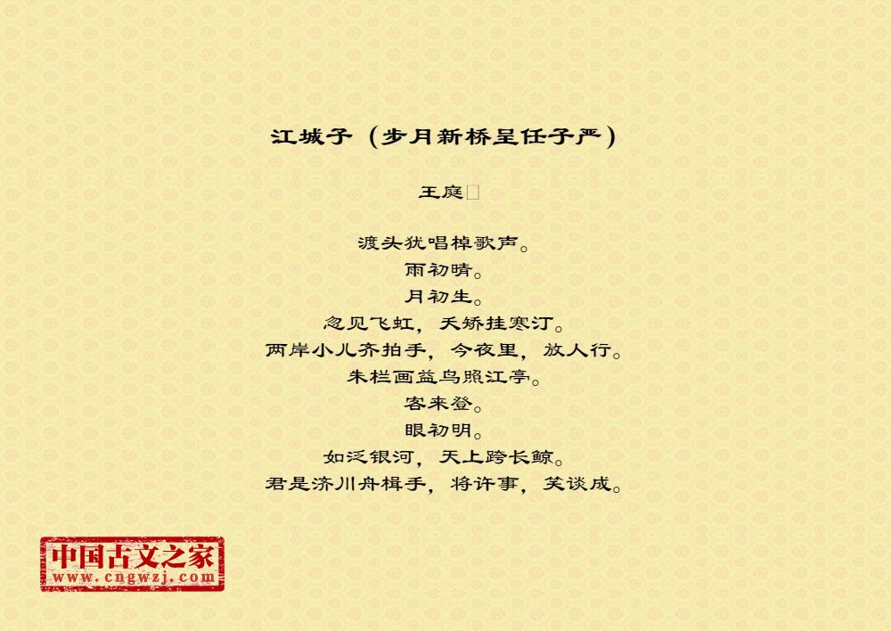《江城子(步月新桥呈任子严)》的原文打印版(王庭)