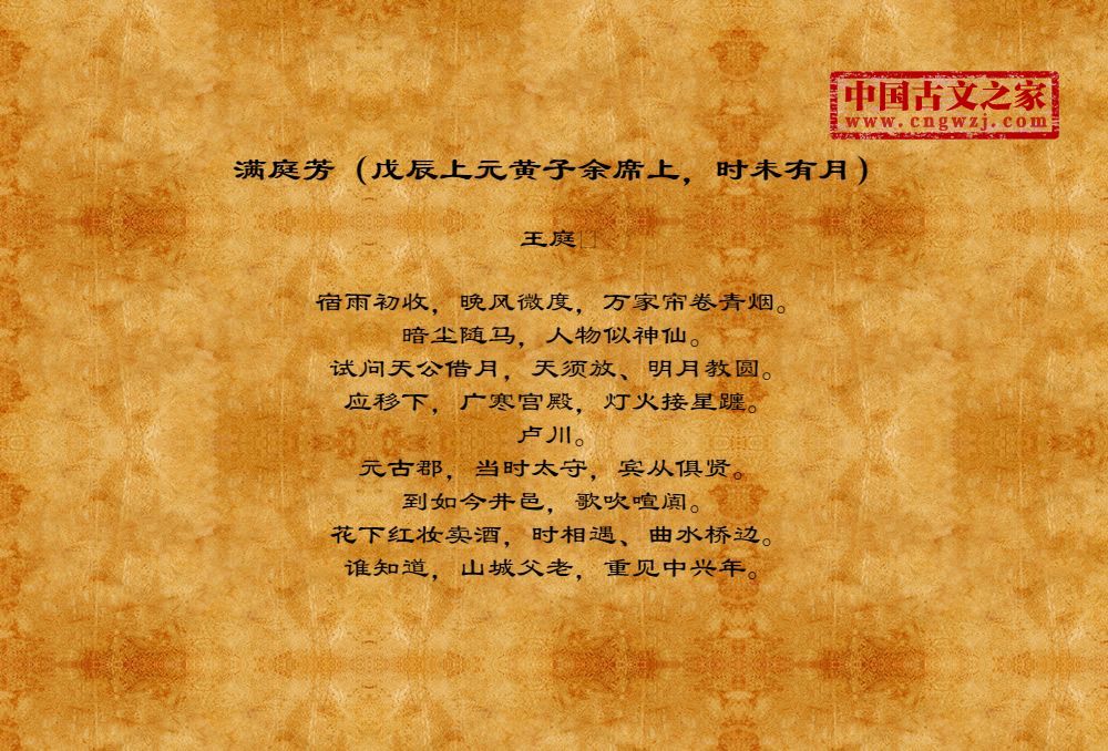 《满庭芳(戊辰上元黄子余席上,时未有月)》的原文打印版(王庭)