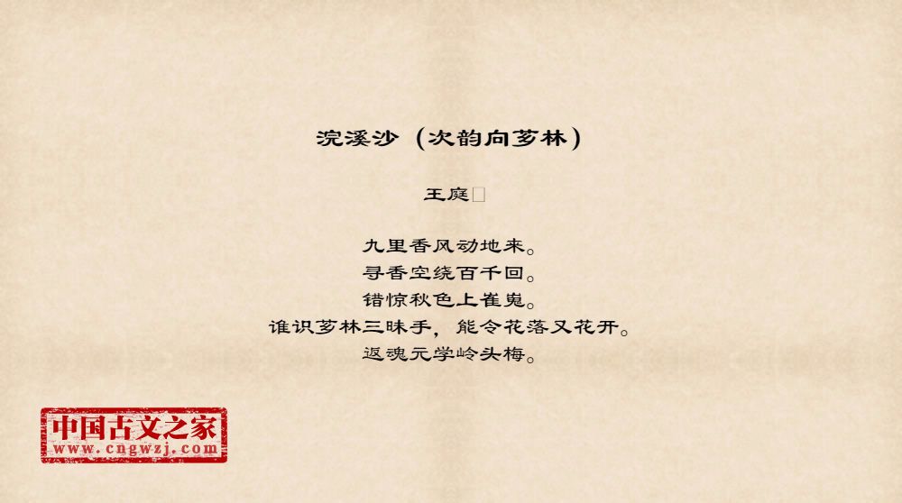 《浣溪沙(次韵向芗林)》的原文打印版(王庭)