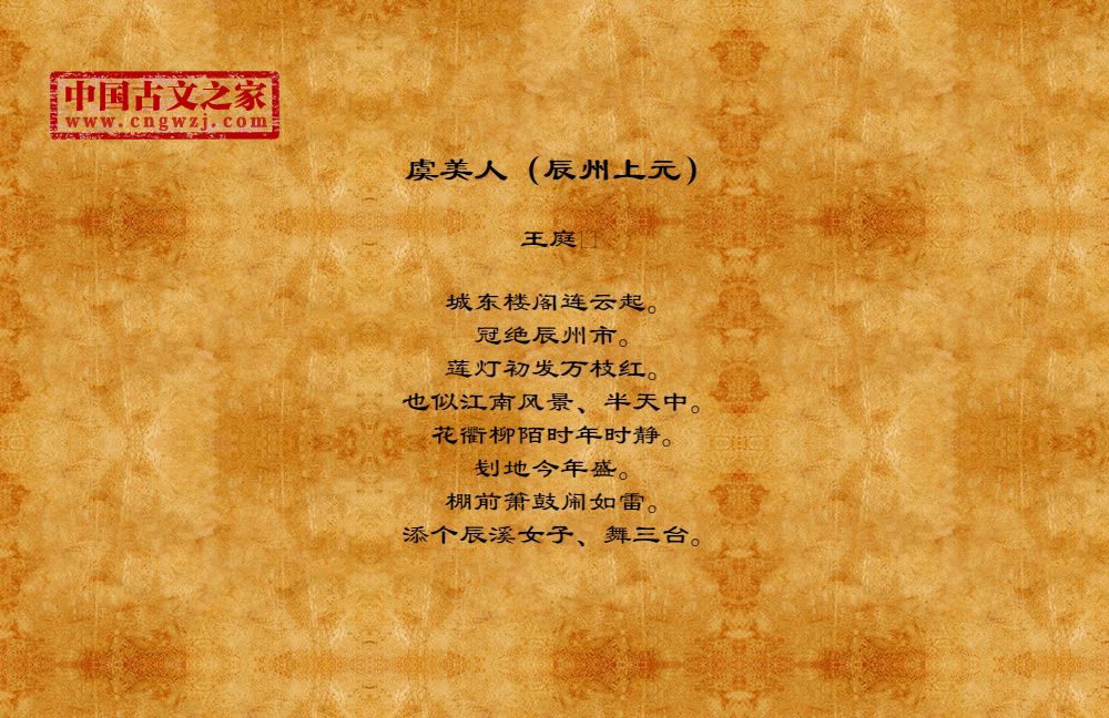 《虞美人(辰州上元)》的原文打印版(王庭)