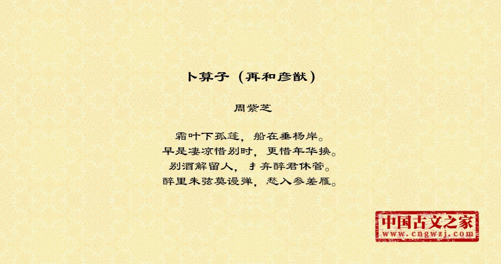 《卜算子(再和彦猷)》由周紫芝创作