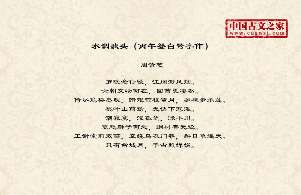 《水调歌头(丙午登白鹭亭作)》由周紫芝创作