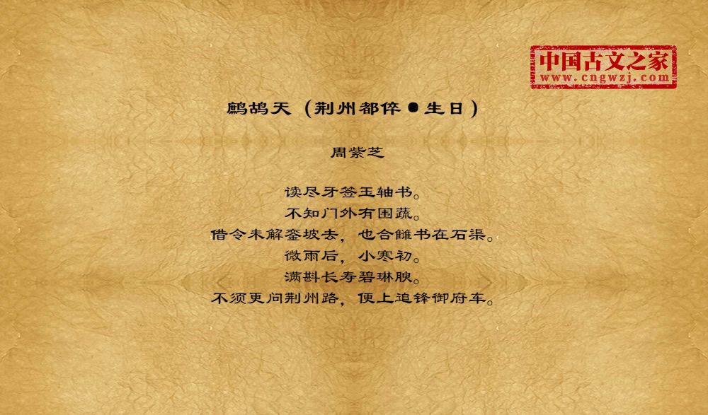 《鹧鸪天(荆州都倅·生日)》的原文打印版(周紫芝)