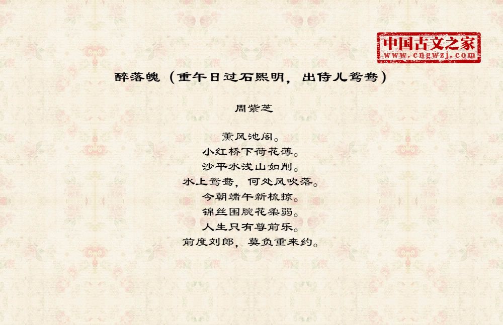 《醉落魄(重午日过石熙明,出侍儿鸳鸯)》由周紫芝创作