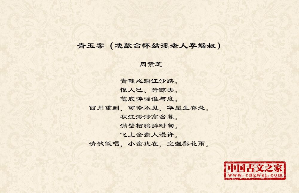 《青玉案(凌歊台怀姑溪老人李端叔)》的原文打印版(周紫芝)
