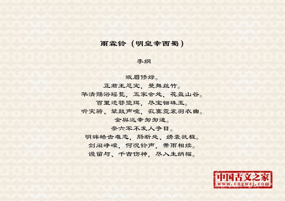 蛾眉修绿。正君王恩宠,曼舞丝竹。华清赐浴瑶甃,五家会处,花盈山谷。百里遗簪堕珥,尽宝钿珠玉。听突骑、鼙鼓声喧,寂寞霓裳羽衣曲。金舆远幸匆匆速。奈六军不发人争目。明眸皓齿难恋,肠断处、绣囊犹馥。剑阁峥嵘,何况铃声,带雨相续。谩留与、千古伤神,尽入生绡幅。