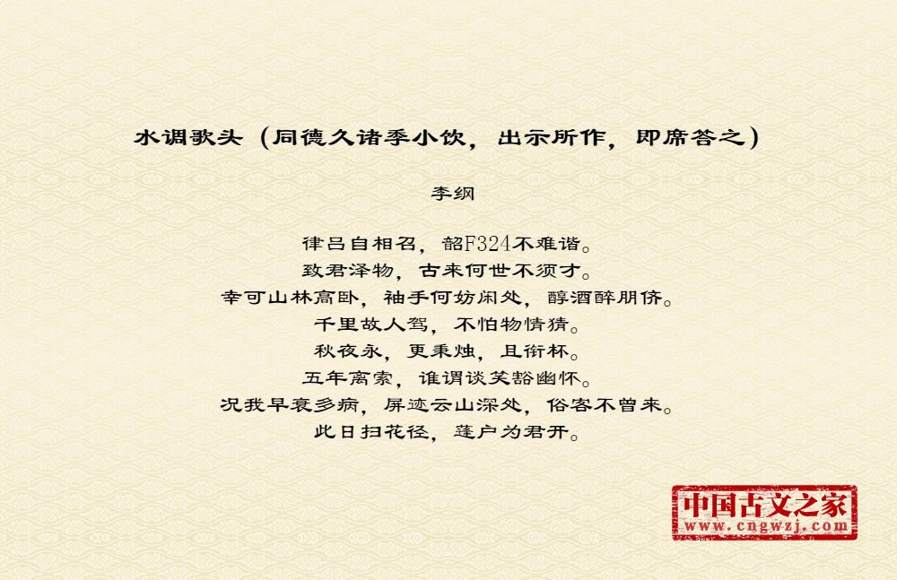 《水调歌头(同德久诸季小饮,出示所作,即席答之)》的原文打印版(李纲)