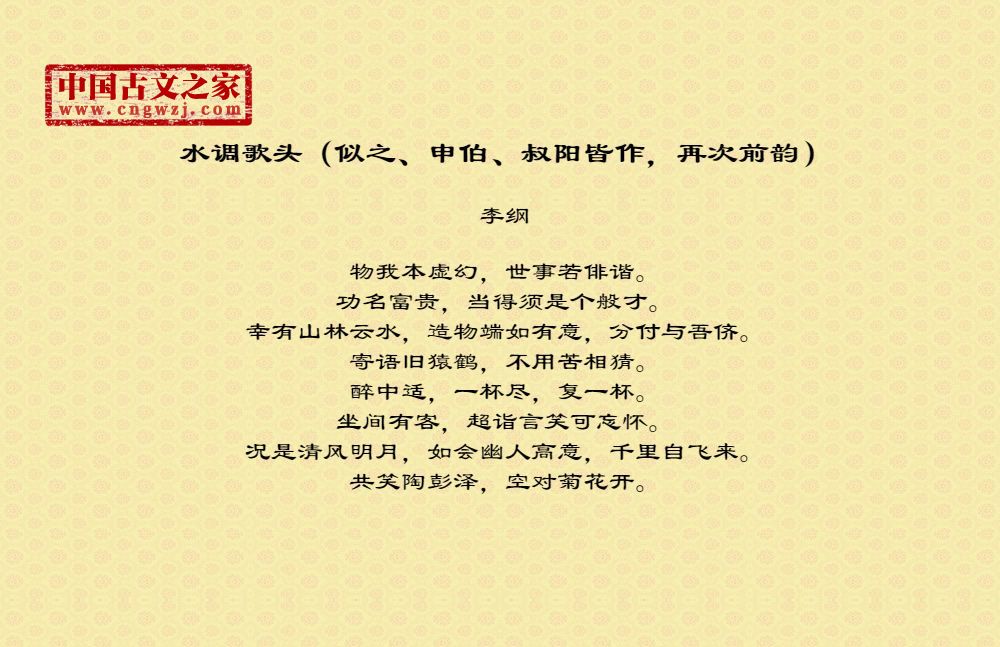 《水调歌头(似之、申伯、叔阳皆作,再次前韵)》的原文打印版(李纲)
