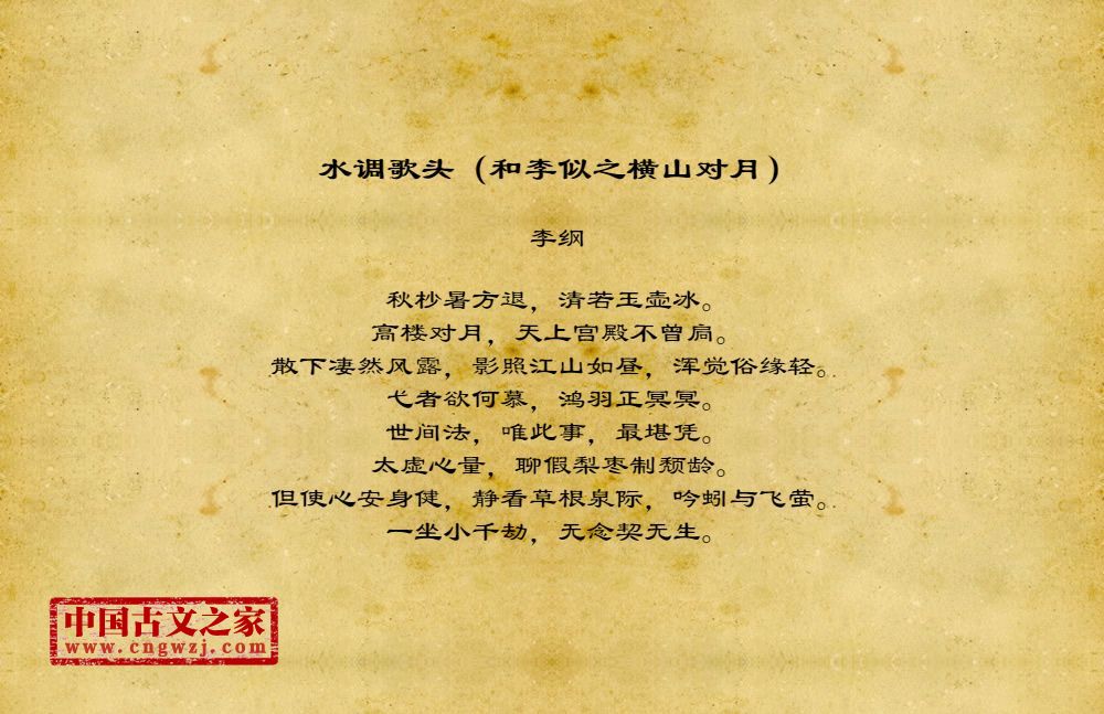 《水调歌头(和李似之横山对月)》的原文打印版(李纲)