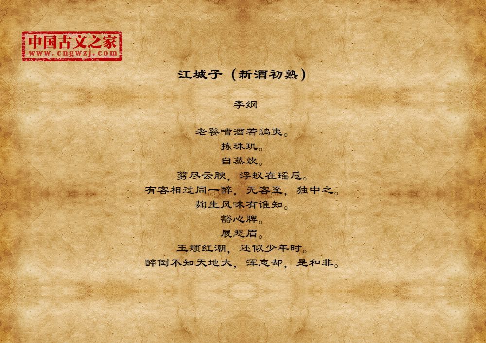 老饕嗜酒若鸱夷。拣珠玑。自蒸炊。篘尽云腴,浮蚁在瑶卮。有客相过同一醉,无客至,独中之。麹生风味有谁知。豁心脾。展愁眉。玉颊红潮,还似少年时。醉倒不知天地大,浑忘却,是和非。