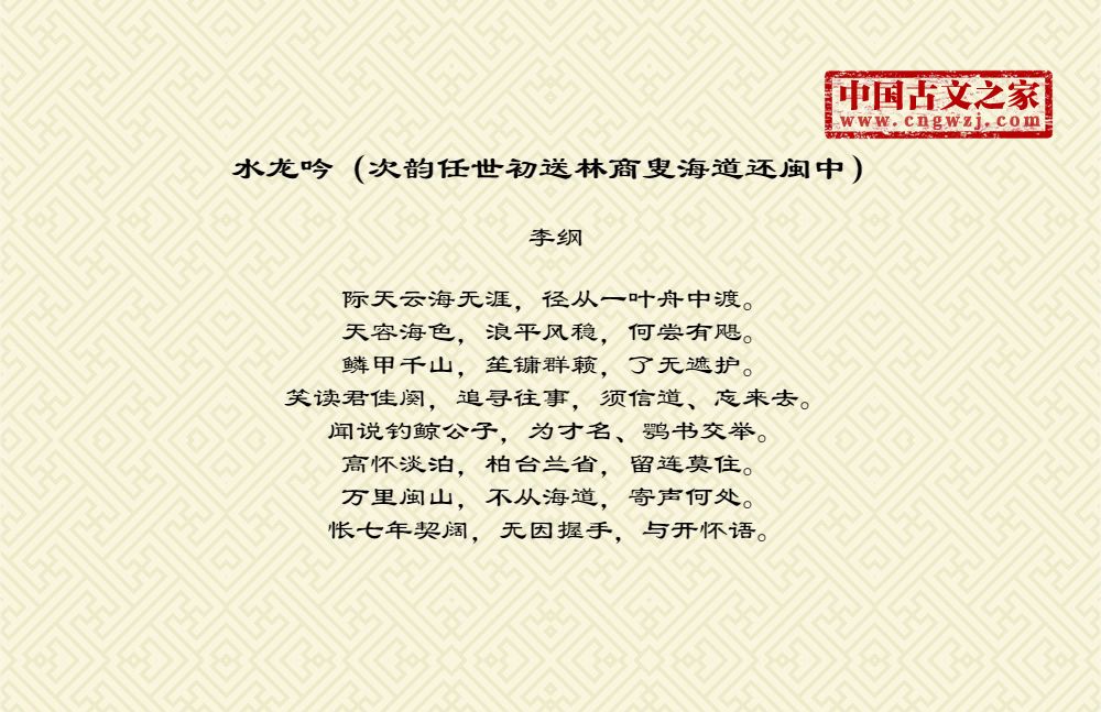 《水龙吟(次韵任世初送林商叟海道还闽中)》的原文打印版(李纲)