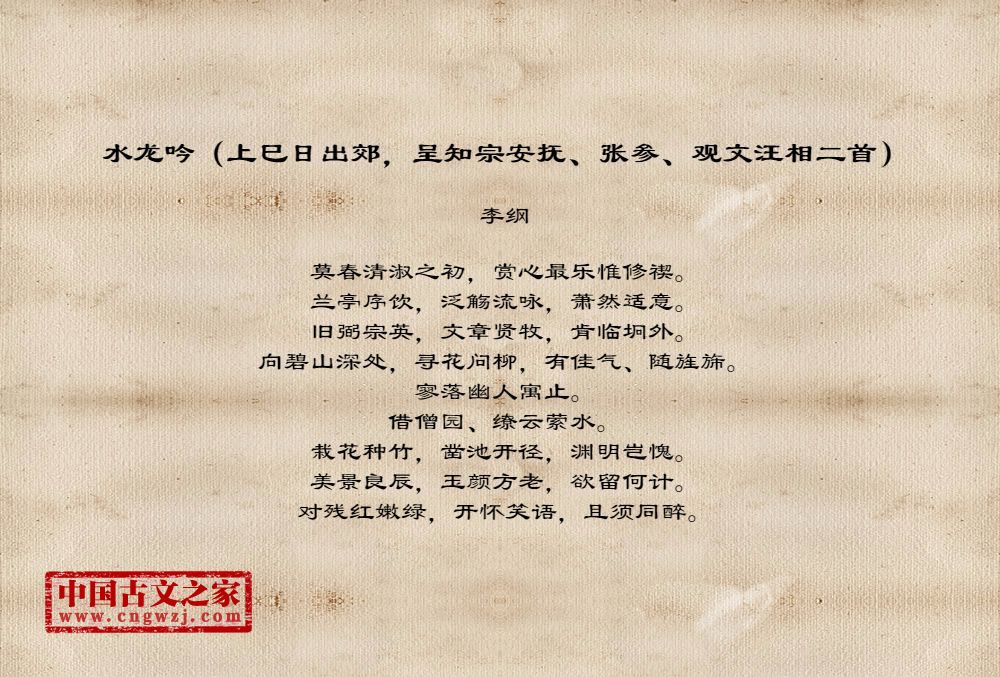 《水龙吟(上巳日出郊,呈知宗安抚、张参、观文汪相二首)》的原文打印版(李纲)