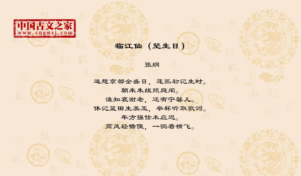 《临江仙(坚生日)》由张纲创作