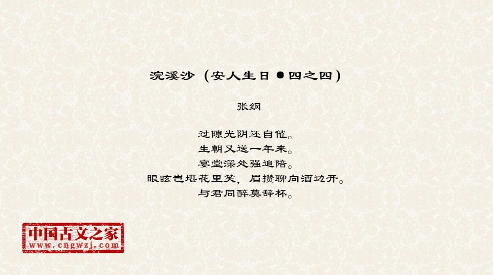 《浣溪沙(安人生日·四之四)》由张纲创作