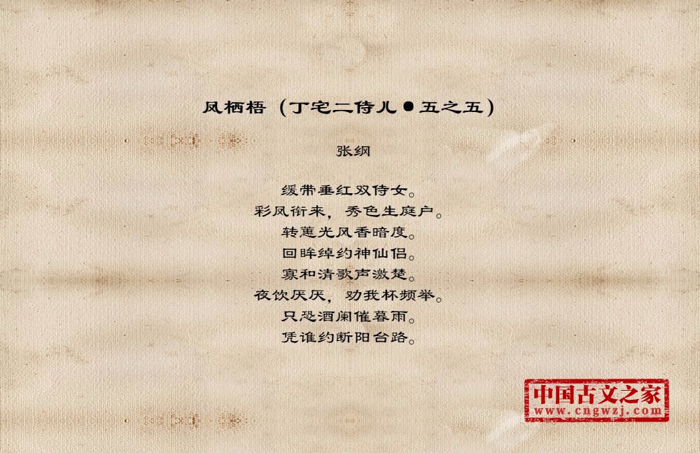 《凤栖梧(丁宅二侍儿·五之五)》的原文打印版(张纲)