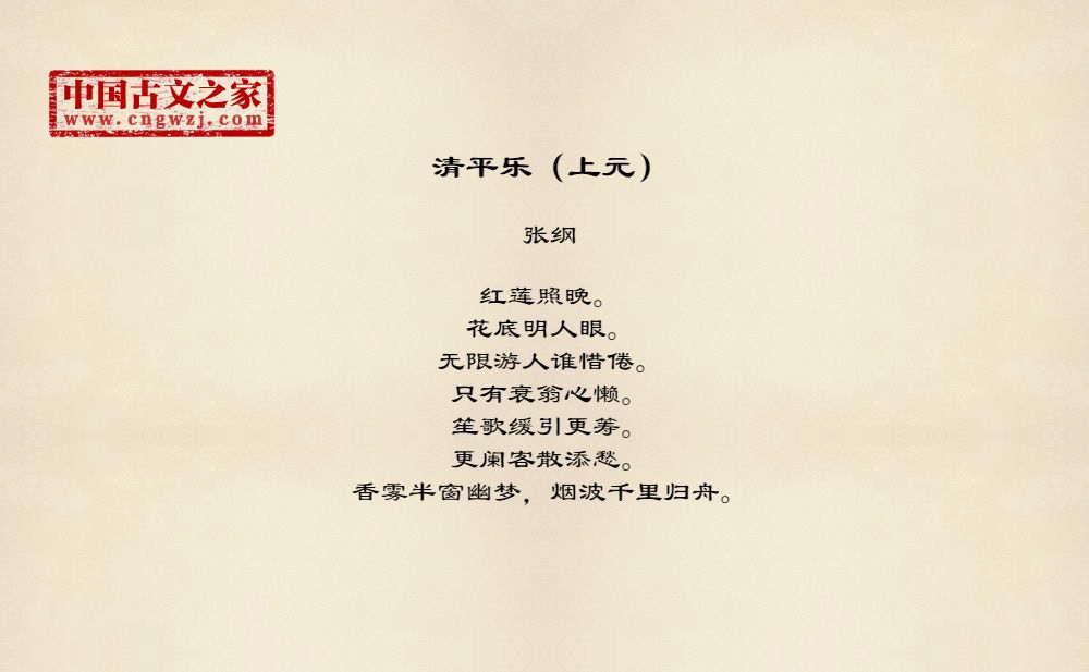 《清平乐(上元)》的原文打印版(张纲)