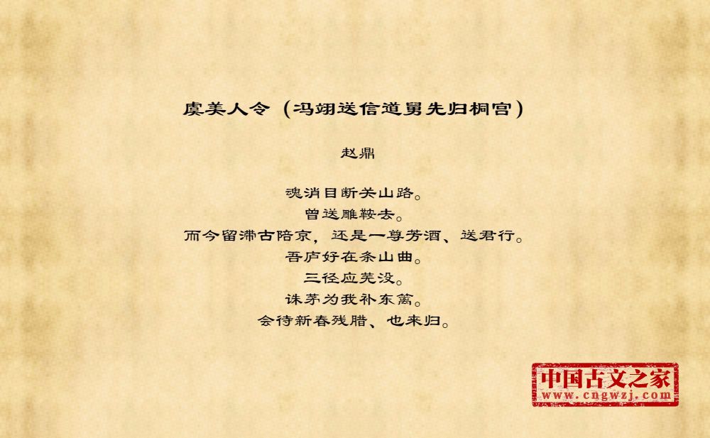 《虞美人令(冯翊送信道舅先归桐宫)》的原文打印版(赵鼎)